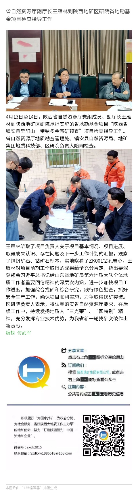 省自然资源厅副厅长王雁林到陕西地矿区研院省地勘基金项目检查指导工作!