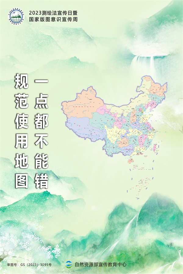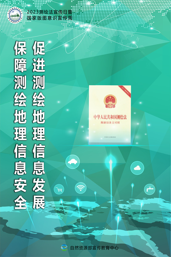 2023测绘法宣传日暨国家版图意识宣传周即将到来,自然资源部宣传教育中心设计了宣传海报供各地下载使用。本海报使用过程中严禁变形,仅限于非商业、公益性使用,如用于其他途径,使用者自负法律责任。