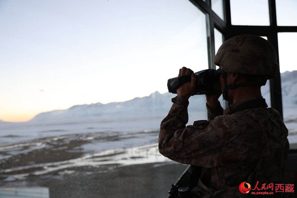 官兵在观察哨所周边情况。人民日报记者琼达卓嘎摄