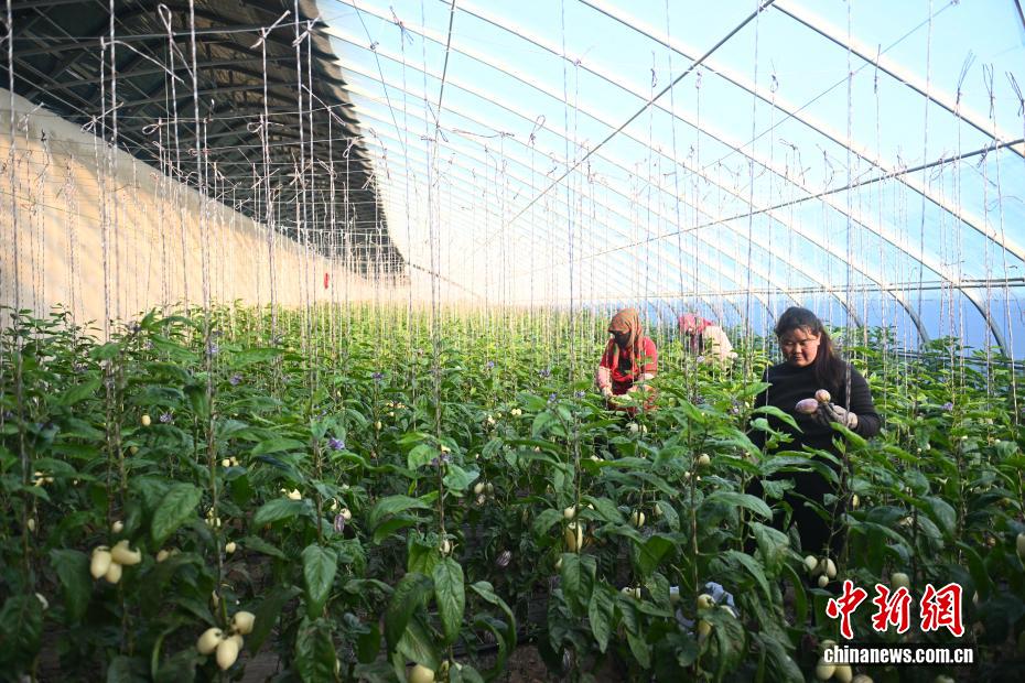 12月17日,在位于甘肃省临夏回族自治州积石山县关家川乡灾后恢复重建的蔬菜大棚内,安置人员进行采摘工作。2023年12月18日,甘肃临夏州积石山县发生6.2级地震。两年来,积石山县209个纳入国家规划的灾后恢复重建项目已全面完成验收,住房、教育、产业、医疗等一批基础设施项目建成投用,标志着甘肃积石山6.2级地震灾后恢复重建工作实现“三年任务两年完成”。中新社记者李亚龙摄