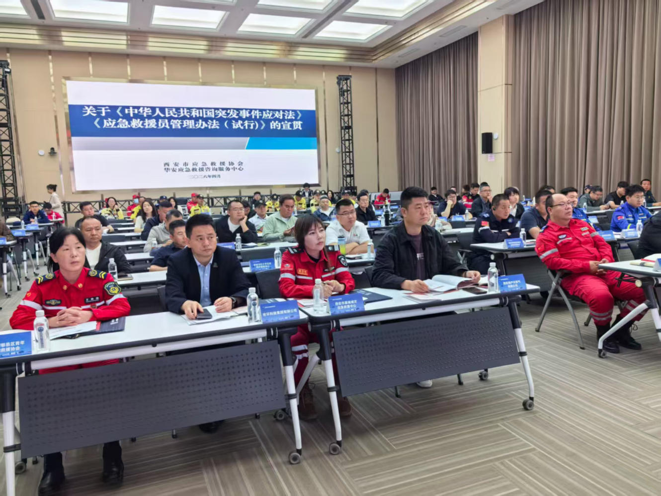 2026年4月28日上午,西安市应急救援协会在未央区中建七局四公司会议室举办《中华人民共和国突发事件应对法》《应急救援员职业资格管理办法(试行)》宣贯培训,并同步开展2025年度应急救援工作先进表彰活动,全市各会员单位负责人参会。