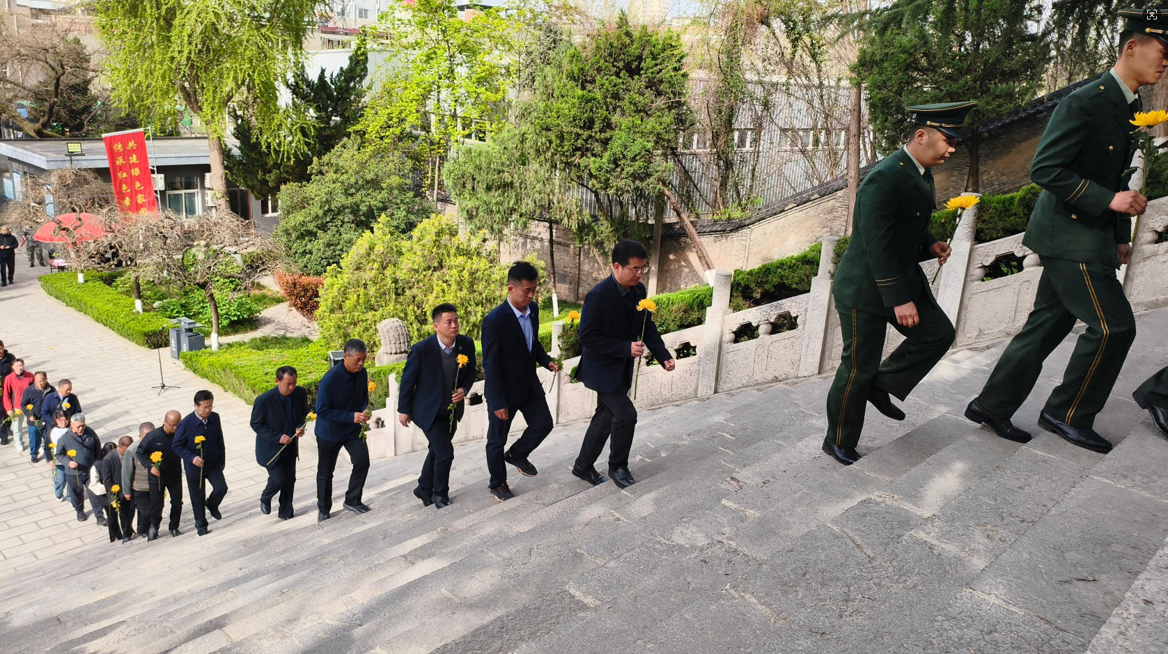 2026年4月3日,地环科技集团积极响应西安市长安区退役军人事务局号召,由集团党支部书记、董事长华曙光带队,与长安区自主择业干部共同参与“追寻•2026•清明祭英烈”活动,以实际行动致敬革命先烈,凝聚集团发展奋进力量。