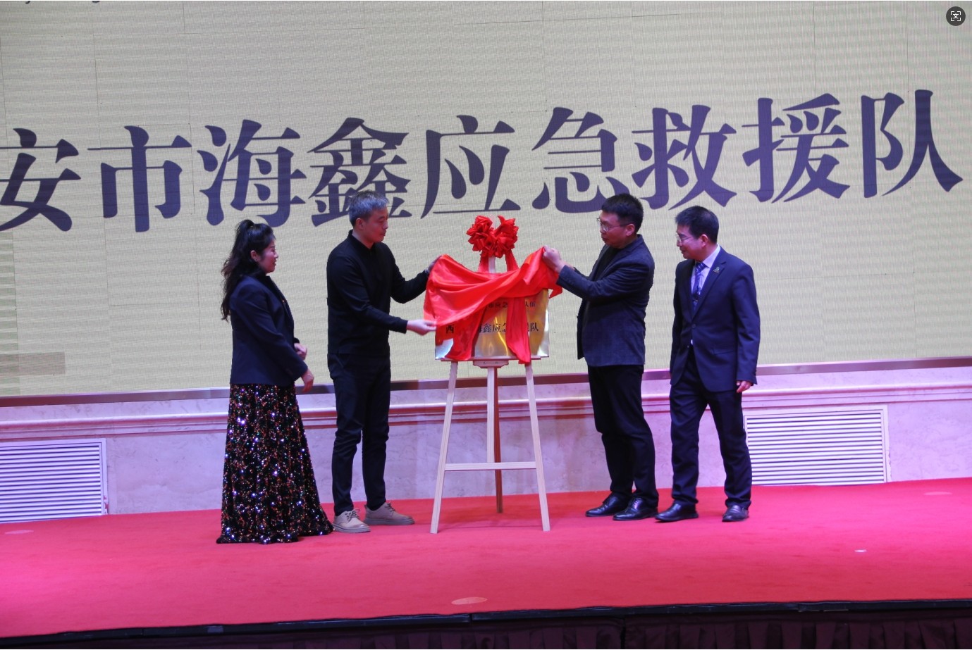 红稠落下、掌声响起,“西安市海鑫应急救援队”的队牌崭新亮相,标志着救援队正式挂牌。