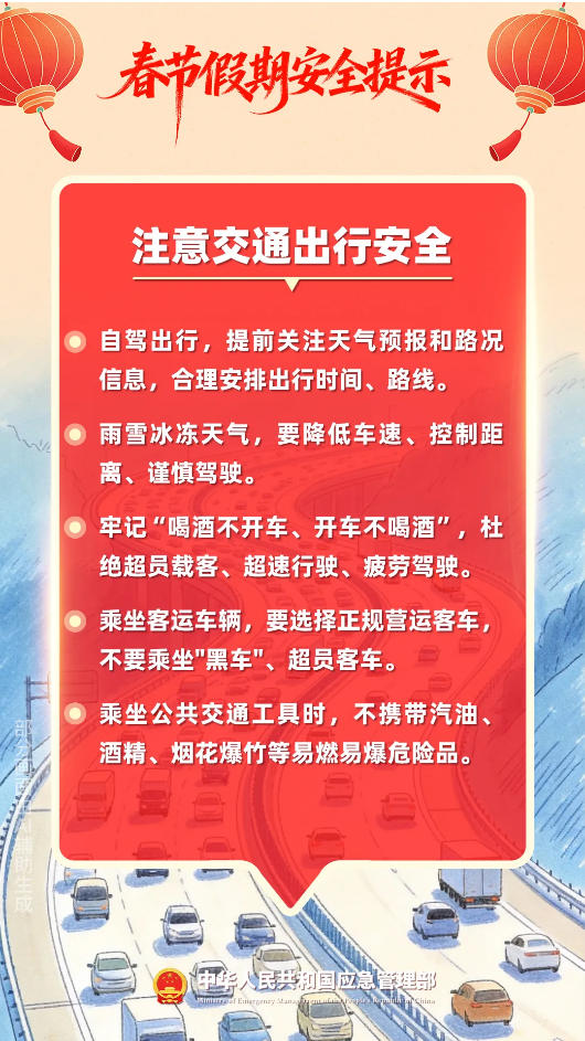 群众出游、自驾出行、客货运输迎来高峰,灯会、庙会、促销庆典等大型活动多,宾馆、饭店、市场、商超等场所人流密集,各类风险隐患交织叠加。