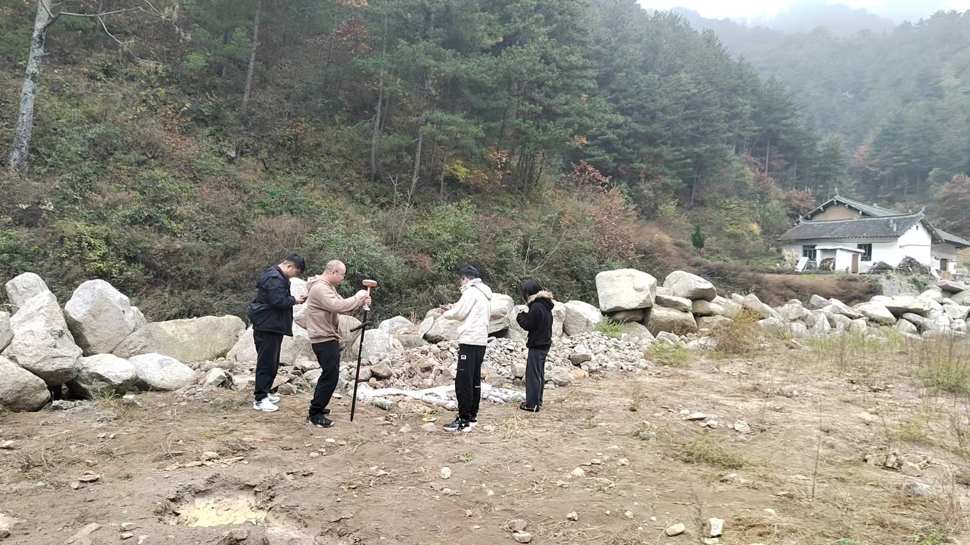 2025年11月5日,地环科技集团技术部技术人员前往红岩寺镇,为6日专家野外检查打好提前量。